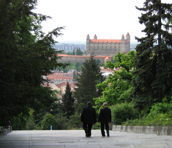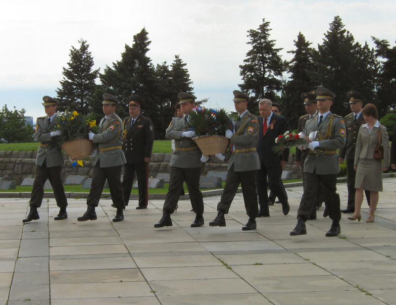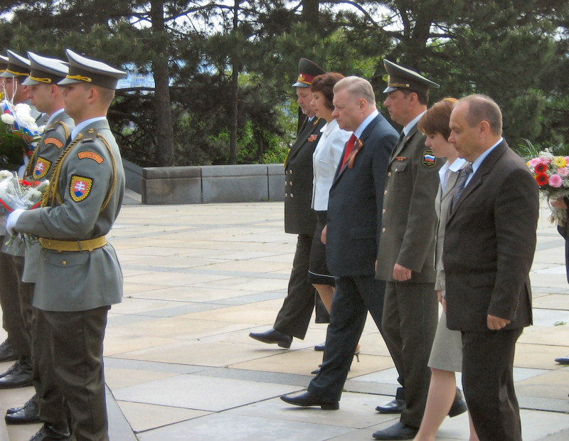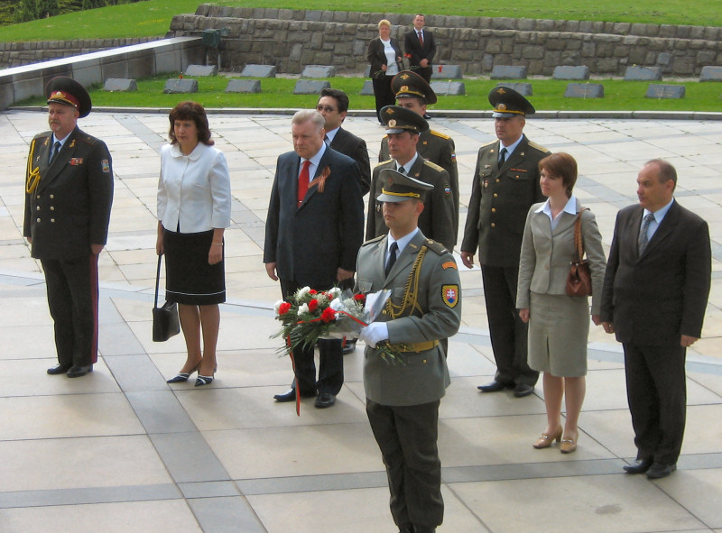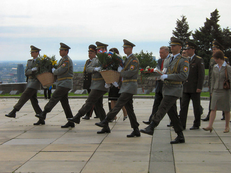 День Победы. Торжественное возложение венков к мемориалу советским воинам «Славин» с участием сотрудникокв Посольства РФ. Братислава, Словакия. 2008г. © Александр Серебряков